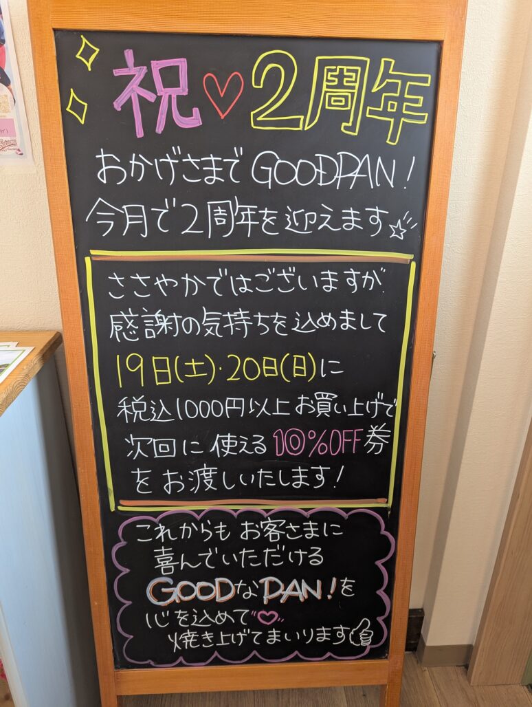 那須塩原市にある、ちょっと素敵なパン屋さん「GOODPAN!👍」に行ってきました。OPENから2周年記念、地元で評判のお店だけあって、お昼前にはすでに人気商品が売り切れてしまうこともあるほどです。