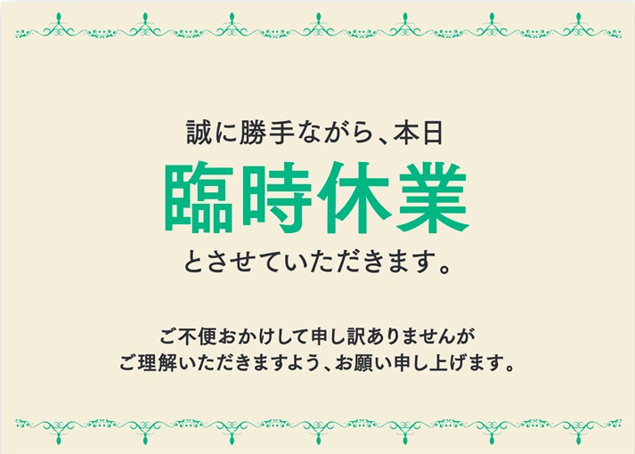 10/14(火)臨時休業のお知らせ