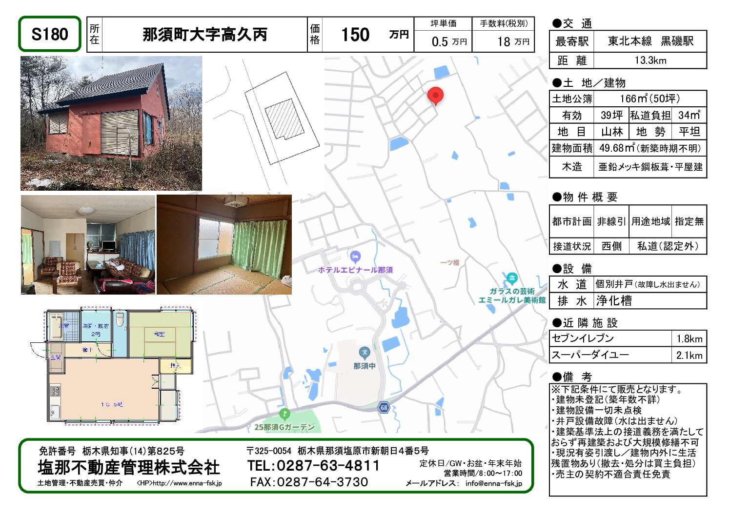 ★新着情報【高久丙】訳あり中古物件(150万円)1LDK