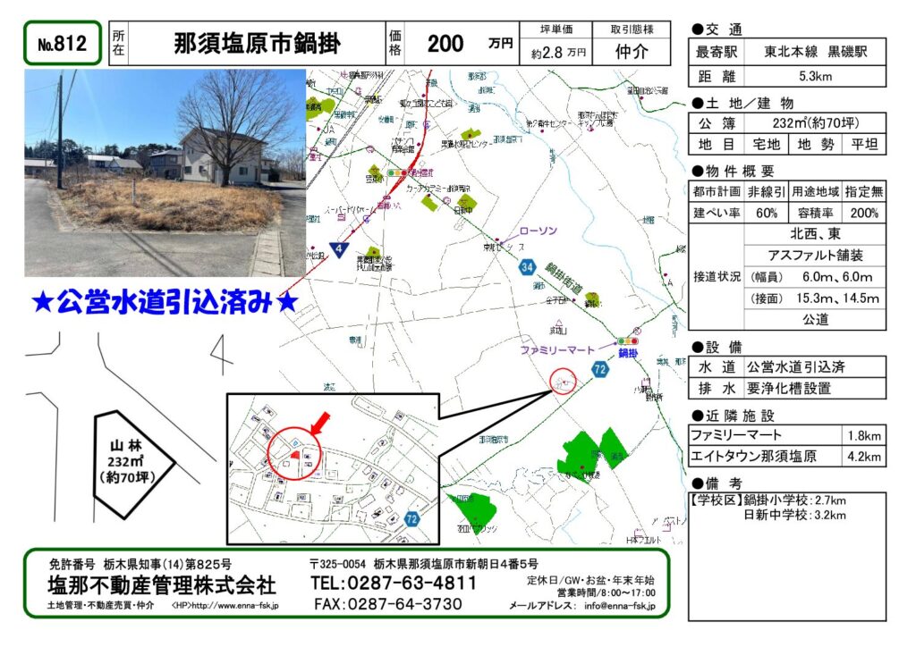 | カテゴリ | 売地, 那須塩原市学区, 那須塩原市(旧黒磯市), 鍋掛小学校学区, 日新中学校学区, 鍋掛 | タグ | |