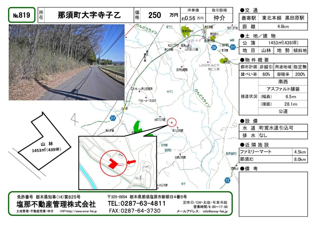 | 周辺環境 | 余笹川ふれあい公園: 4.4km/ スーパーダイユー: 4.5km/ 那須町役場: 4.5km/ ファミリーマート: 4.5km/ コメリハード&グリーン(ホームセンター): 4.8km/ 那須IC: 8.0km/ 芦野温泉: 8.6km | ||