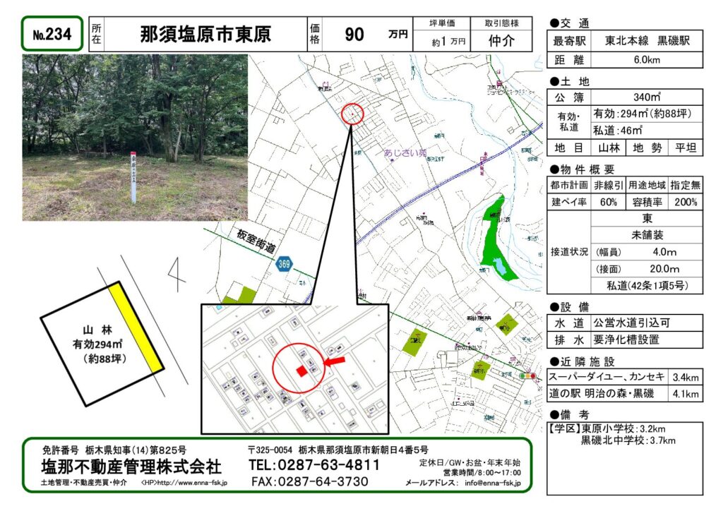 公営水道引込可、東原小学校・黒磯北中学校区。