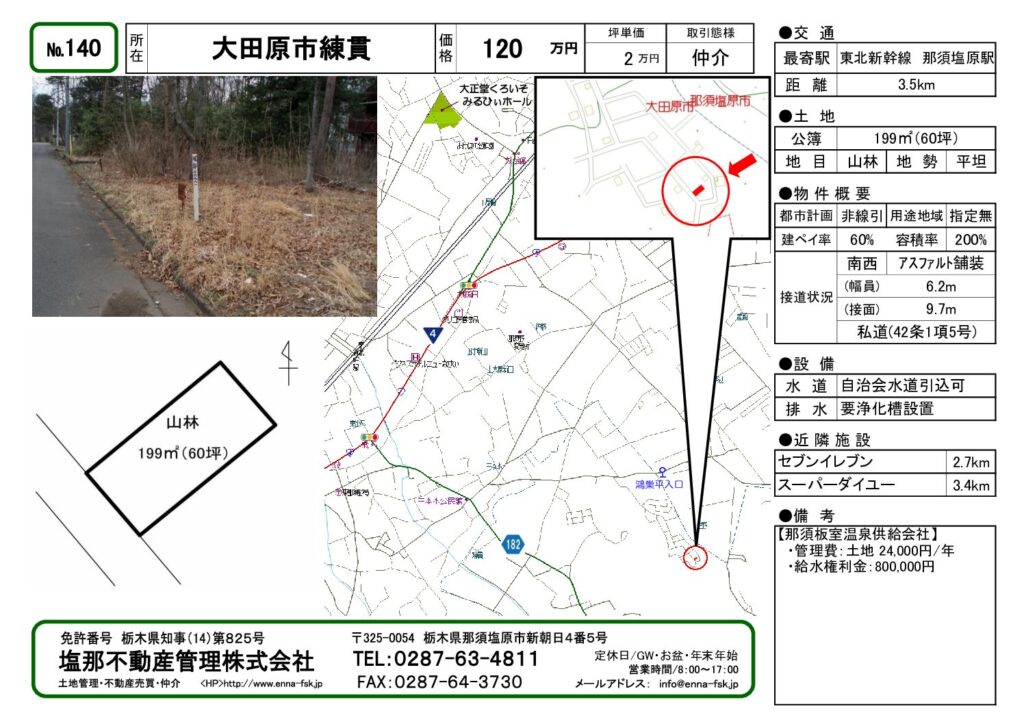 | 交通 | JR東北新幹線 那須塩原駅 徒歩3500m |