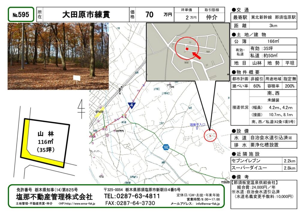 | 特記事項 | 【那須板室温泉供給株式会社】■組合費: 土地 24,000円/年 | ||