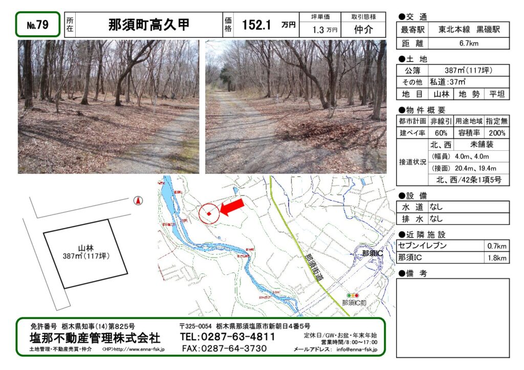 那須インター近く !! 周辺は自然豊かな環境です。那須街道まで550m。